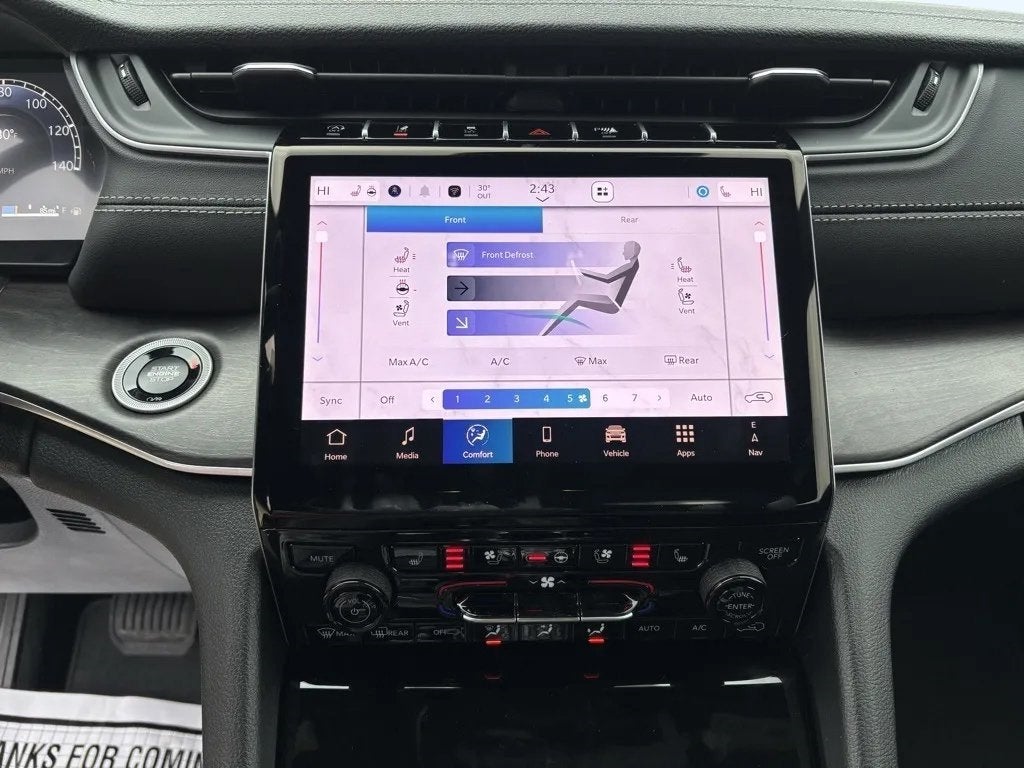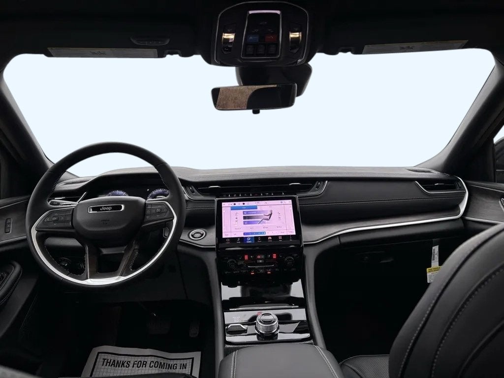 This Jeep Grand Cherokee L has many features and is well equipped including, 2nd Row Manual Window Shades, 3.45 Rear Axle Ratio, 3rd row seats: split-bench, 4-Wheel Disc Brakes, 6 Speakers, ABS brakes, Active Noise Control System, Air Conditioning, Alloy wheels, AM/FM radio: SiriusXM with 360L, Anti-whiplash front head restraints, Audio memory, Auto High-beam Headlights, Auto-Dimming Exterior Driver Mirror, Automatic temperature control, Black Appearance Package, Brake assist, Bumpers: body-color, Capri Leatherette Seats, Capri Leatherette with Axis II Seats, Compass, Delay-off headlights, Driver door bin, Driver vanity mirror, Dual front impact airbags, Dual front side impact airbags, Dual-Pane Panoramic Sunroof, Electronic Stability Control, Emergency communication system, Four wheel independent suspension, Front anti-roll bar, Front Bucket Seats, Front Center Armrest w/Storage, Front dual zone A/C, Front fog lights, Front License Plate Bracket, Front reading lights, Fully automatic headlights, Garage door transmitter, Gloss Black Exterior Accents, Heated door mirrors, Heated front seats, Heated rear seats, Heated steering wheel, Illuminated entry, Integrated Off-Road Camera, Interior Rear Facing Camera, Intersection Collision Assist System, Knee airbag, Low tire pressure warning, Luxury Tech Group II, Manual Fold Seatbacks, Memory seat, Memory Steering Column, Model Year Tracking, Navigation System, Normal Duty Suspension, Occupant sensing airbag, Outside temperature display, Overhead airbag, Overhead console, Panic alarm, ParkSense Front/Rear Park Assist with Stop, ParkView Rear Back-Up Camera, Passenger door bin, Passenger vanity mirror, Passive Entry - Front/Rear Doors, Liftgate, Power door mirrors, Power driver seat, Power Liftgate, Power passenger seat, Power steering, Power Tilt/Telescope Steering Column, Power windows, Quick Order Package 22E, Radio data system, Radio: Uconnect 5 Nav with 10.1 Display, Rain Sensitive Windshield Wipers, Rear air conditioning, Rear anti-roll bar, Rear Back Up Camera Washer, Rear reading lights, Rear window defroster, Rear window wiper, Rearview Autodim Digital Display Mirror, Reclining 3rd row seat, Remote keyless entry, Security system, Speed control, Speed-Sensitive Wipers, Split folding rear seat, Spoiler, Steering wheel mounted audio controls, Surround View Camera System, Tachometer, Telescoping steering wheel, Tilt steering wheel, Traction control, Trip computer, Turn signal indicator mirrors, Variably intermittent wipers, Ventilated Front Seats, Voltmeter, Wheels: 18 x 8.0 Polished/Painted Aluminum, Wheels: 20 x 8.5 Gloss Black Painted Aluminum, Wireless Charging Pad.