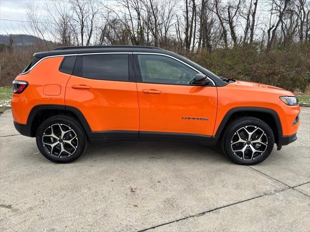 This Jeep Compass has many features and is well equipped including, 10.1 Touchscreen Display, 2nd Row USB Type A/C Charge Only, 3.73 Final Drive Ratio, 4-Wheel Disc Brakes, 4G LTE Wi-Fi Hot Spot, 6 Speakers, ABS brakes, Active Driving Assist System, Air Conditioning, Alexa Built-In, Alloy wheels, AM/FM radio: SiriusXM, Auto High-beam Headlights, Auto-dimming Rear-View mirror, Automatic temperature control, Brake assist, Bumpers: body-color, Cluster 10.25 TFT Color Display, Compass, Connected Travel and Traffic Services, Delay-off headlights, Driver Assist Group I, Driver door bin, Driver vanity mirror, Dual front impact airbags, Dual front side impact airbags, Electronic Stability Control, Emergency communication system: SiriusXM Guardian, Four wheel independent suspension, Front anti-roll bar, Front Bucket Seats, Front Center Armrest w/Storage, Front dual zone A/C, Front fog lights, Front License Plate Bracket, Front reading lights, Fully automatic headlights, Global Telematics Box Module, GPS Navigation, HD Radio, Heated door mirrors, Heated front seats, Heated steering wheel, Illuminated entry, Integrated Voice Command with Bluetooth®, Knee airbag, Leather Shift Knob, Leather steering wheel, Leatherette Seats, Low tire pressure warning, MyFlexCare Service Plan, Occupant sensing airbag, Outside temperature display, Overhead airbag, Overhead console, Panic alarm, ParkView Rear Back-Up Camera, Passenger door bin, Passenger vanity mirror, Power door mirrors, Power driver seat, Power Front/Fixed Rear Full Sunroof, Power Liftgate, Power steering, Power windows, Premium Alpine Speaker System, Premium audio system: UConnect 5, Quick Order Package 29G Limited, Radio: Uconnect 5 with 10.1 Display, Rain sensing wipers, Rear anti-roll bar, Rear seat center armrest, Rear window defroster, Rear window wiper, Remote keyless entry, Security system, SiriusXM Guardian - Included Trail (B), SiriusXM Radio Service, SiriusXM with 360L, Speed control, Split folding rear seat, Spoiler, Steering wheel mounted audio controls, Sun, Sound and Navigation Group, Tachometer, Telescoping steering wheel, Tilt steering wheel, Traction control, Traffic Sign Recognition, Trip computer, Turn signal indicator mirrors, Variably intermittent wipers, Wheels: 18 x 7 Painted Diamond Cut Aluminum, Wireless Charging Pad.