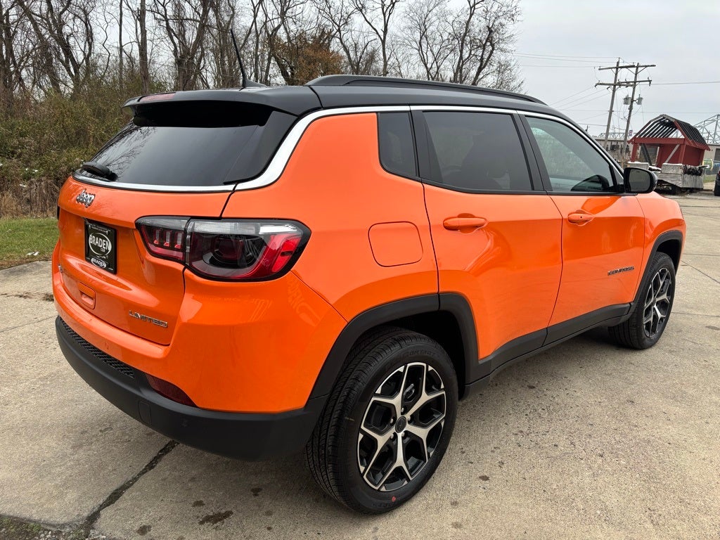 This Jeep Compass has many features and is well equipped including, 10.1 Touchscreen Display, 2nd Row USB Type A/C Charge Only, 3.73 Final Drive Ratio, 4-Wheel Disc Brakes, 4G LTE Wi-Fi Hot Spot, 6 Speakers, ABS brakes, Active Driving Assist System, Air Conditioning, Alexa Built-In, Alloy wheels, AM/FM radio: SiriusXM, Auto High-beam Headlights, Auto-dimming Rear-View mirror, Automatic temperature control, Brake assist, Bumpers: body-color, Cluster 10.25 TFT Color Display, Compass, Connected Travel and Traffic Services, Delay-off headlights, Driver Assist Group I, Driver door bin, Driver vanity mirror, Dual front impact airbags, Dual front side impact airbags, Electronic Stability Control, Emergency communication system: SiriusXM Guardian, Four wheel independent suspension, Front anti-roll bar, Front Bucket Seats, Front Center Armrest w/Storage, Front dual zone A/C, Front fog lights, Front License Plate Bracket, Front reading lights, Fully automatic headlights, Global Telematics Box Module, GPS Navigation, HD Radio, Heated door mirrors, Heated front seats, Heated steering wheel, Illuminated entry, Integrated Voice Command with Bluetooth®, Knee airbag, Leather Shift Knob, Leather steering wheel, Leatherette Seats, Low tire pressure warning, MyFlexCare Service Plan, Occupant sensing airbag, Outside temperature display, Overhead airbag, Overhead console, Panic alarm, ParkView Rear Back-Up Camera, Passenger door bin, Passenger vanity mirror, Power door mirrors, Power driver seat, Power Front/Fixed Rear Full Sunroof, Power Liftgate, Power steering, Power windows, Premium Alpine Speaker System, Premium audio system: UConnect 5, Quick Order Package 29G Limited, Radio: Uconnect 5 with 10.1 Display, Rain sensing wipers, Rear anti-roll bar, Rear seat center armrest, Rear window defroster, Rear window wiper, Remote keyless entry, Security system, SiriusXM Guardian - Included Trail (B), SiriusXM Radio Service, SiriusXM with 360L, Speed control, Split folding rear seat, Spoiler, Steering wheel mounted audio controls, Sun, Sound and Navigation Group, Tachometer, Telescoping steering wheel, Tilt steering wheel, Traction control, Traffic Sign Recognition, Trip computer, Turn signal indicator mirrors, Variably intermittent wipers, Wheels: 18 x 7 Painted Diamond Cut Aluminum, Wireless Charging Pad.