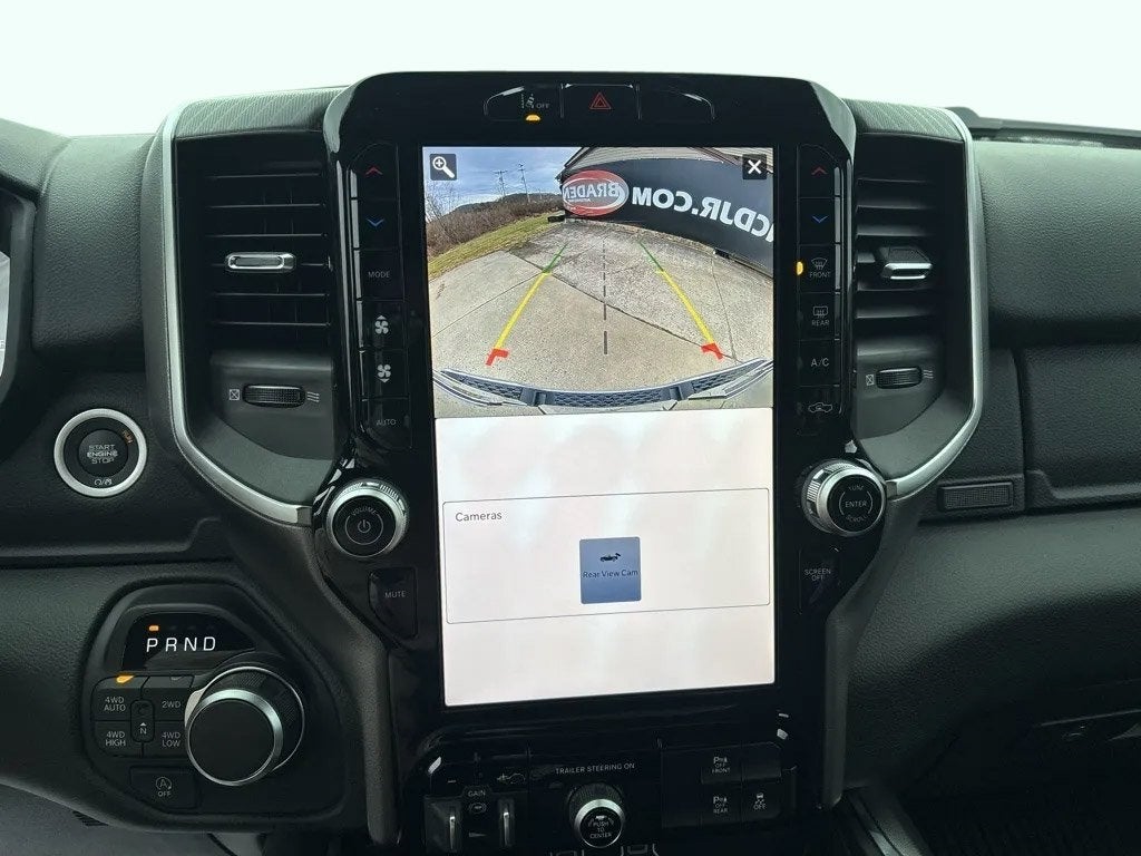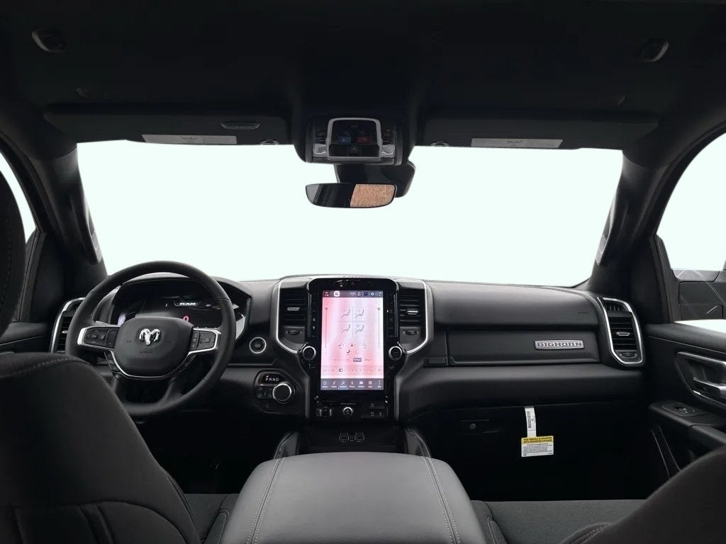 This Ram 1500 has many features and is well equipped including, 115V Auxiliary Power Outlet, 115V Auxiliary Rear Power Outlet, 12 Touchscreen Display, 2nd Row in Floor Storage Bins, 3 Rear Seat Head Restraints, 4 Way Front Headrests, 4-Wheel Disc Brakes, 400W Inverter, 48V Belt Starter Generator, 4G LTE Wi-Fi Hot Spot, 9 Amplified Speakers with Subwoofer, ABS brakes, Accent Color Tailgate Handle, Air Conditioning, Air Conditioning ATC with Dual Zone Control, Alloy wheels, AM/FM radio, Apple CarPlay, Apple CarPlay/Android Auto, Auto Power-Folding Mirrors, Auto-Dimming Exterior Driver Mirror, Auto-Dimming Rear-View Mirror, Big Horn Level 2 Equipment Group, Black Exterior Mirrors, Black Premium Power Mirrors, Black Trailer Tow Power Mirrors, Body Color Fender Flares, Brake assist, Bucket Seats, Bumpers: chrome, Center Console Parts Module, Cloth Bucket Seats, Cluster 12 TFT Color Display, Cluster 7.0 TFT Color Display, Compass, Configurable Drive Mode, Connected Travel and Traffic Services, Connectivity - US/Canada, Convex Wide-Angle Exterior Mirror Insert, Deluxe Cloth Bucket Seats, Disassociated Touchscreen Display, Driver door bin, Electronic Stability Control, Exterior Mirrors Courtesy Lamps, Exterior Mirrors with Heating Element, Exterior Mirrors with Supplemental Signals, Front Bucket Seats, Front Center Armrest w/Storage, Front License Plate Bracket, Front reading lights, Front Seat Back Map Pockets, Front wheel independent suspension, Full Length Floor Console, Fully automatic headlights, Global Telematics Box Module, Glove Box Lamp, Google Android Auto, GPS Antenna Input, GPS Navigation, Heated door mirrors, Heated Front Seats, Heated Steering Wheel, Illuminated entry, Integrated Center Stack Radio, Integrated Voice Command with Bluetooth®, Leather Wrapped Steering Wheel, LED Dome Lamp with on/Off Switch, LED Footwell Lighting, Low tire pressure warning, Manual Adjust 4-Way Driver Seat, Manual Adjust 4-Way Front Passenger Seat, Manual Folding Exterior Mirrors, Media Hub with 2 Charge Only USBs, Mirror Clearance/Running Lights, MOPAR Front and Rear Rubber Floor Mats, MyFlexCare Service Plan, Occupant sensing airbag, Outside temperature display, Overhead airbag, Panic alarm, ParkView Rear Back-Up Camera, Passenger door bin, Power 2-Way Driver Lumbar Adjust, Power Adjust 8-Way Driver Seat, Power door mirrors, Power-Adjustable Convex Aux Mirrors, Premium Overhead Console, Radio: Uconnect 5 Navigation with 12.0 Display, Radio: Uconnect 5 W with 8.4 Display, RAM Grille Badge - Chrome, Rear anti-roll bar, Rear Center Armrest, Rear Window Defroster, Remote Tailgate Release, Security Alarm, SiriusXM Radio Service, Speed control, Supplier Part Tracking (J-1), Traction control, Trailer Brake Control, Trailer Reverse Steering Control, Trailer Tire Pressure Monitoring System, Trailer Tow Group, Trailer Tow Mirrors, Variably intermittent wipers.