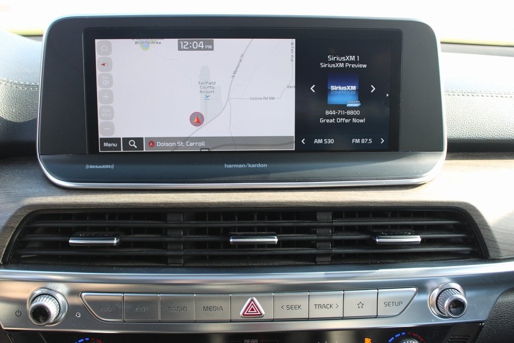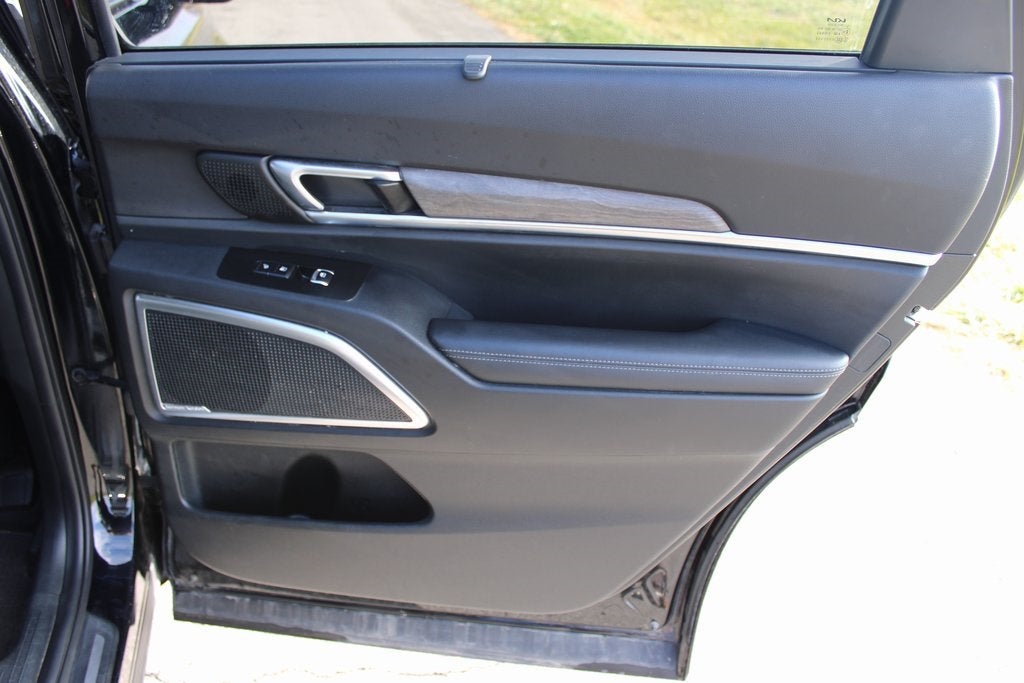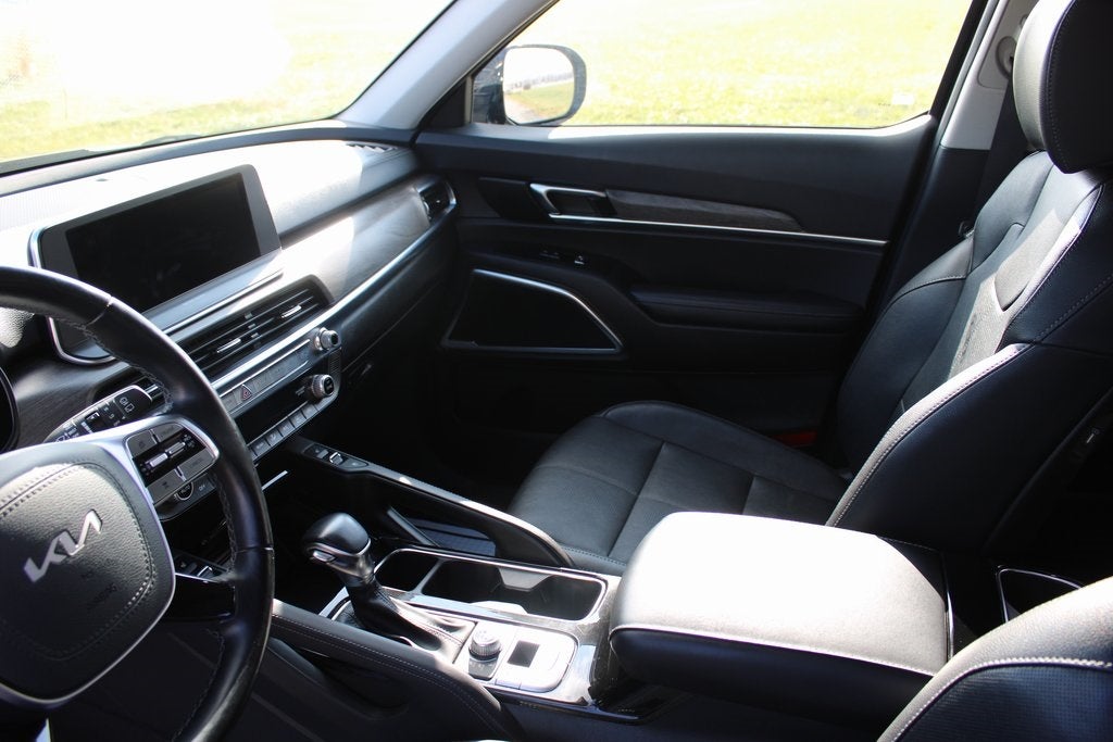 This Kia Telluride has many features and is well equipped including, 10 Speakers, 3.648 Axle Ratio, 3rd row seats: split-bench, 4-Wheel Disc Brakes, ABS brakes, Air Conditioning, Alloy wheels, AM/FM radio: SiriusXM, Apple CarPlay & Android Auto, Auto High-beam Headlights, Auto-dimming Rear-View mirror, Automatic temperature control, Brake assist, Bumpers: body-color, Compass, Delay-off headlights, Driver door bin, Driver vanity mirror, Dual front impact airbags, Dual front side impact airbags, Electronic Stability Control, Emergency communication system: 911 Connect, Four wheel independent suspension, Front anti-roll bar, Front Bucket Seats, Front Center Armrest, Front dual zone A/C, Front fog lights, Front reading lights, Fully automatic headlights, Garage door transmitter: HomeLink, harman/kardon® Speakers, Heated & Ventilated Front Bucket Seats, Heated door mirrors, Heated front seats, Heated steering wheel, Illuminated entry, Knee airbag, Leather Seat Trim, Leather Shift Knob, Leather steering wheel, Low tire pressure warning, Memory seat, Navigation System, Occupant sensing airbag, Outside temperature display, Overhead airbag, Overhead console, Panic alarm, Passenger door bin, Passenger vanity mirror, Power door mirrors, Power driver seat, Power Liftgate, Power moonroof, Power passenger seat, Power steering, Power windows, Radio data system, Radio: AM/FM harman/kardon Audio System, Rear air conditioning, Rear anti-roll bar, Rear audio controls, Rear reading lights, Rear window defroster, Rear window wiper, Reclining 3rd row seat, Remote keyless entry, Roof rack: rails only, Security system, Smart Key w/ Push Button and Remote Start, Speed control, Speed-sensing steering, Split folding rear seat, Spoiler, Steering wheel mounted audio controls, Tachometer, Telescoping steering wheel, Tilt steering wheel, Traction control, Trip computer, Turn signal indicator mirrors, Variably intermittent wipers, Ventilated front seats, Wheels: 20 x 7.5 Black Alloy.