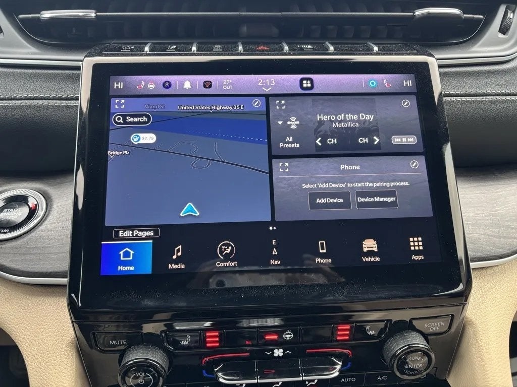 This Jeep Grand Cherokee has many features and is well equipped including, 6 Speakers, Capri Leatherette Seats, Compass, Emergency communication system, Heated door mirrors, Heated front seats, Heated rear seats, Heated steering wheel, Navigation System, Outside temperature display, Overhead console, Panic alarm, ParkView Rear Back-Up Camera, Power driver seat, Power Liftgate, Quick Order Package 23E, Security system, Split folding rear seat, Spoiler, Traction control, Turn signal indicator mirrors, 3.45 Rear Axle Ratio, 4-Wheel Disc Brakes, ABS brakes, Active Noise Control System, Air Conditioning, Alloy wheels, AM/FM radio: SiriusXM with 360L, Anti-whiplash front head restraints, Audio memory, Auto High-beam Headlights, Automatic temperature control, Brake assist, Bumpers: body-color, Delay-off headlights, Driver door bin, Driver vanity mirror, Dual front impact airbags, Dual front side impact airbags, Electronic Stability Control, Four wheel independent suspension, Front anti-roll bar, Front Bucket Seats, Front Center Armrest w/Storage, Front dual zone A/C, Front fog lights, Front reading lights, Fully automatic headlights, Garage door transmitter, Illuminated entry, Knee airbag, Low tire pressure warning, Memory seat, Normal Duty Suspension, Occupant sensing airbag, Overhead airbag, Passenger door bin, Passenger vanity mirror, Power door mirrors, Power passenger seat, Power steering, Power windows, Radio data system, Radio: Uconnect 5 Nav w/10.1 Display, Rear anti-roll bar, Rear reading lights, Rear window defroster, Rear window wiper, Remote keyless entry, Speed control, Speed-Sensitive Wipers, Steering wheel mounted audio controls, Tachometer, Telescoping steering wheel, Tilt steering wheel, Trip computer, Variably intermittent wipers, Voltmeter, Wheels: 18 x 8 Polished/Painted Aluminum, 6 Speakers, Capri Leatherette Seats, Compass, Emergency communication system, Heated door mirrors, Heated front seats, Heated rear seats, Heated steering wheel, Navigation System, Outside temperature display, Overhead console, Panic alarm, ParkView Rear Back-Up Camera, Power driver seat, Power Liftgate, Quick Order Package 23E, Security system, Split folding rear seat, Spoiler, Traction control, Turn signal indicator mirrors.